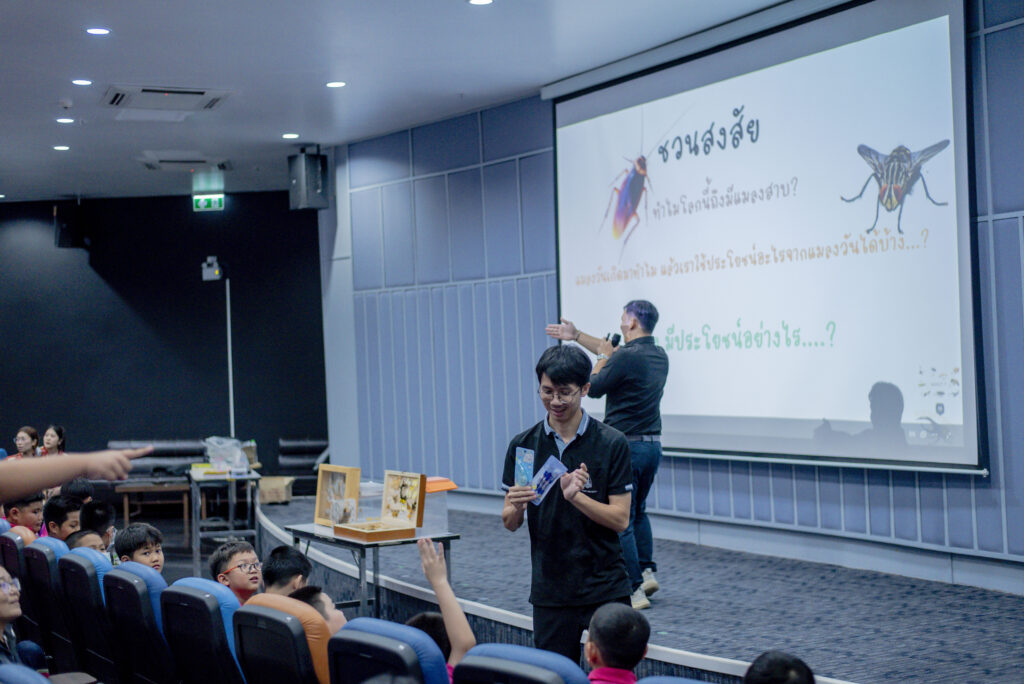 นักเรียนได้ทำความรู้จักแมลงชนิดต่าง ๆ พร้อมสำรวจพื้นที่จริงเพื่อจับแมลงมาศึกษา ก่อนปล่อยกลับคืนสู่ธรรมชาติ ดำเนินกิจกรรมโดย นายศักดิ์ชัย คุณมี และ นายณัฐนันท์ บุญกอง นักวิชาการวิทยาศาสตร์