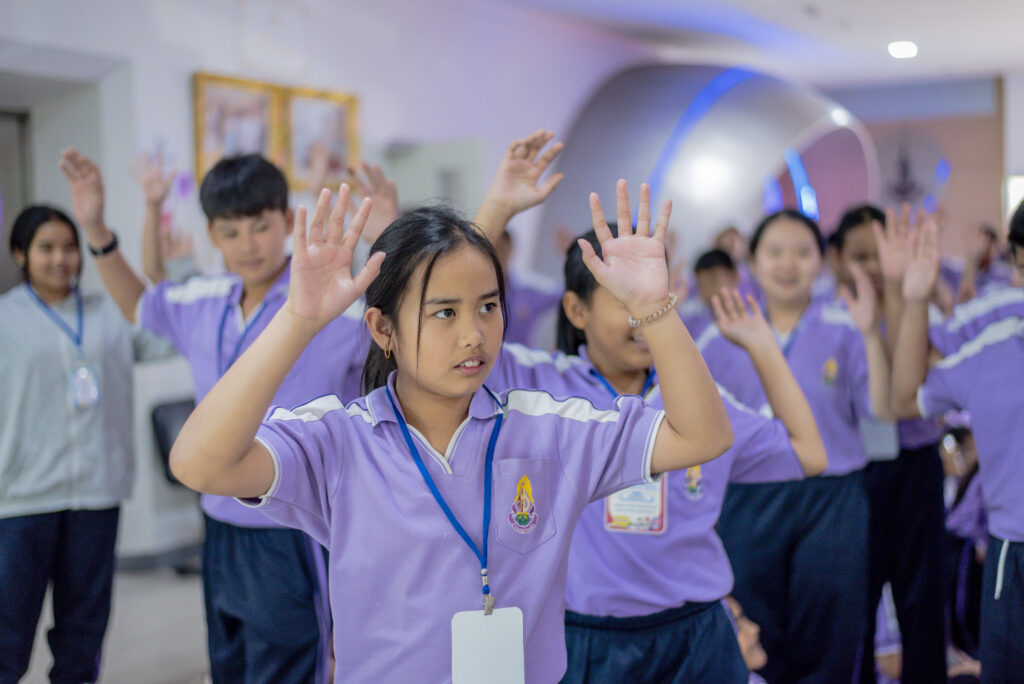ช่วงเช้าเริ่มต้นด้วย กิจกรรมสันทนาการ สร้างความคุ้นเคยและกระตุ้นความพร้อมในการเรียนรู้ โดยได้รับเกียรติจาก นางสาวยุพเรศ ธนะมูล เจ้าหน้าที่ศูนย์พิพิธภัณฑ์ฯ เป็นผู้นำกิจกรรม ช่วยให้นักเรียนผ่อนคลาย สนุกสนาน และพร้อมสำหรับกิจกรรมเชิงวิทยาศาสตร์ในช่วงต่อไป