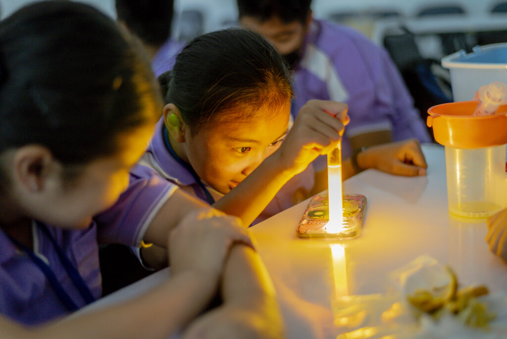 ในช่วงเช้าเป็นกิจกรรมวิทยาศาสตร์ยอดนิยม “การสกัด DNA อย่างง่าย” ซึ่งนักเรียนได้ทดลองสกัด DNA จากพืชหรือผลไม้ด้วยตนเอง เรียนรู้กระบวนการแยกชั้นของไขมันและโปรตีนจนเกิดเป็นเส้นใย DNA ที่สามารถมองเห็นได้ด้วยตาเปล่า ทำให้นักเรียนได้เห็นภาพจริงขององค์ประกอบพื้นฐานของสิ่งมีชีวิตอย่างใกล้ชิด กิจกรรมนี้ดำเนินโดย