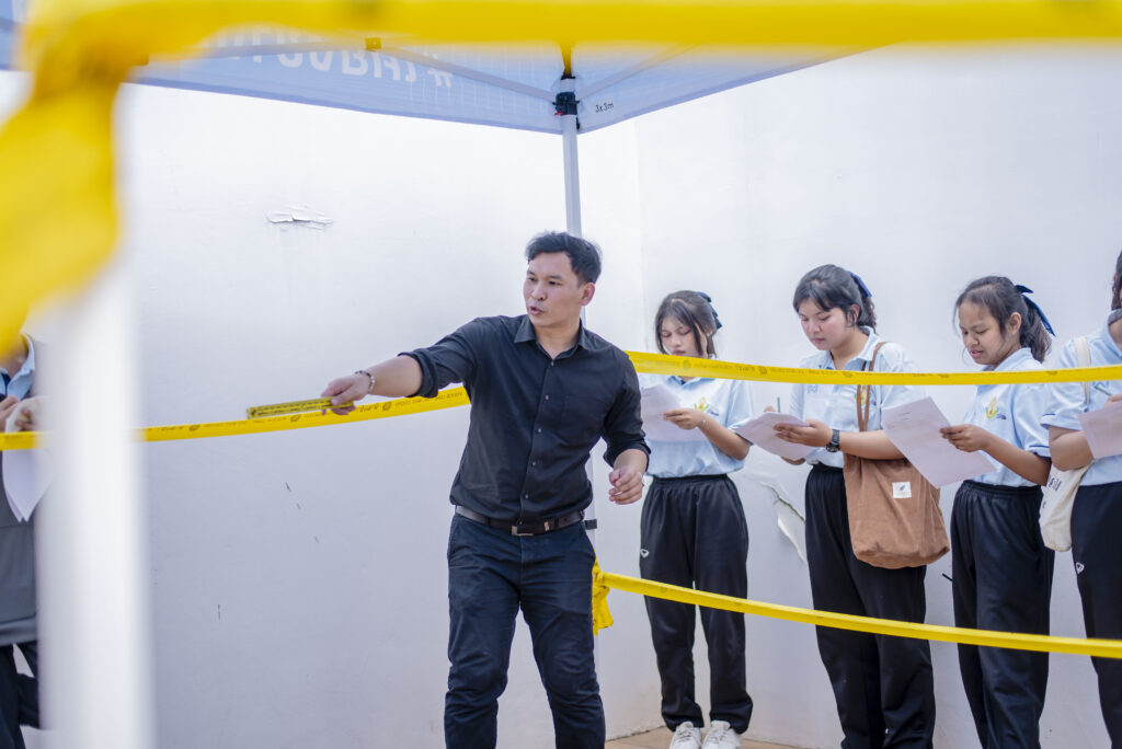 ใน วันที่สอง กิจกรรมเริ่มต้นด้วยฐานการเรียนรู้ด้าน นิติวิทยาศาสตร์ โดยมีการจำลองสถานที่เกิดเหตุ ให้นักเรียนได้ทดลองสำรวจและวิเคราะห์ร่องรอยทางนิติวิทยาศาสตร์ในรูปแบบง่าย ๆ ส่งเสริมทักษะการสังเกต การคิดวิเคราะห์ และการทำงานอย่างเป็นระบบ