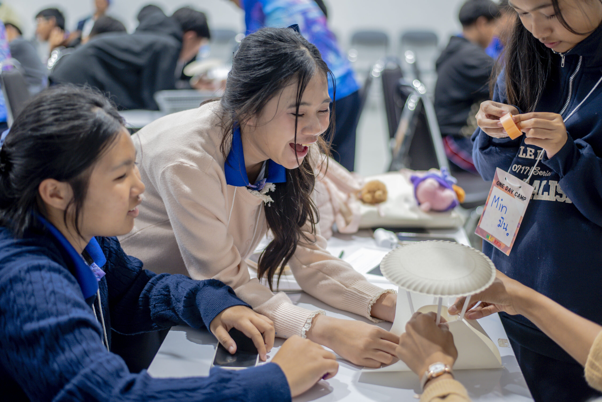 กิจกรรมแรกคือ กิจกรรม “ทัชดาวนาซ่า” ซึ่งเป็นกิจกรรมที่มุ่งเน้นการเรียนรู้เรื่องแรงโน้มถ่วงและการเคลื่อนที่ ผ่านการประดิษฐ์ยานอวกาศจากอุปกรณ์ที่เตรียมไว้ ผู้เข้าร่วมได้ออกแบบ ประกอบ และทดสอบว่ายานอวกาศที่สร้างขึ้นจะสามารถบินลงจอดสู่พื้นได้อย่างปลอดภัยหรือไม่ กิจกรรมนี้ช่วยเสริมทักษะการคิดวิเคราะห์ การแก้ปัญหา และการทำงานเป็นทีม พร้อมทั้งสร้างความสนุกสนานควบคู่ไปกับการเรียนรู้
