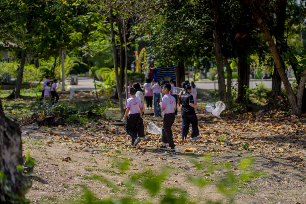 ภายในค่าย นักเรียนได้เข้าร่วมกิจกรรมการเรียนรู้เชิงปฏิบัติการที่มุ่งเน้นการเสริมสร้างความเข้าใจทางวิทยาศาสตร์ผ่านประสบการณ์จริง โดยกิจกรรมแรกในหัวข้อ “โลกของแมลง” เป็นการศึกษาเรื่องระบบนิเวศและความหลากหลายของแมลง ผู้เข้าร่วมได้เรียนรู้ลักษณะจำแนกประเภทของแมลง ความสำคัญต่อระบบนิเวศ ตลอดจนบทบาทของแมลงที่มีต่อสิ่งแวดล้อมและมนุษย์ นอกจากนี้ยังได้ฝึกปฏิบัติการสตัฟแมลงเบื้องต้นอย่างถูกวิธี พร้อมลงพื้นที่สำรวจและจับแมลงเพื่อนำกลับมาศึกษาอย่างใกล้ชิดก่อนเข้าสู่กระบวนการจัดเก็บตัวอย่าง ซึ่งช่วยเสริมสร้างทักษะการสังเกต การวิเคราะห์ และความละเอียดรอบคอบทางวิทยาศาสตร์